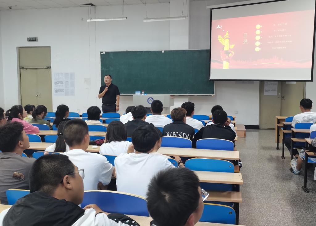 9月11日,校团委书记宋玉彬带领新生深入学习党员、团员的条件义务,新时代合格党员的标准,入党的相关知识与规定等内容,鼓励新生自觉加强学习,在思想上追求上进,在行动上争当表率,以实际行动积极向党组织靠拢。同时以“矢志争做好青年”为题,为材料新生讲授入学第一堂思政课。