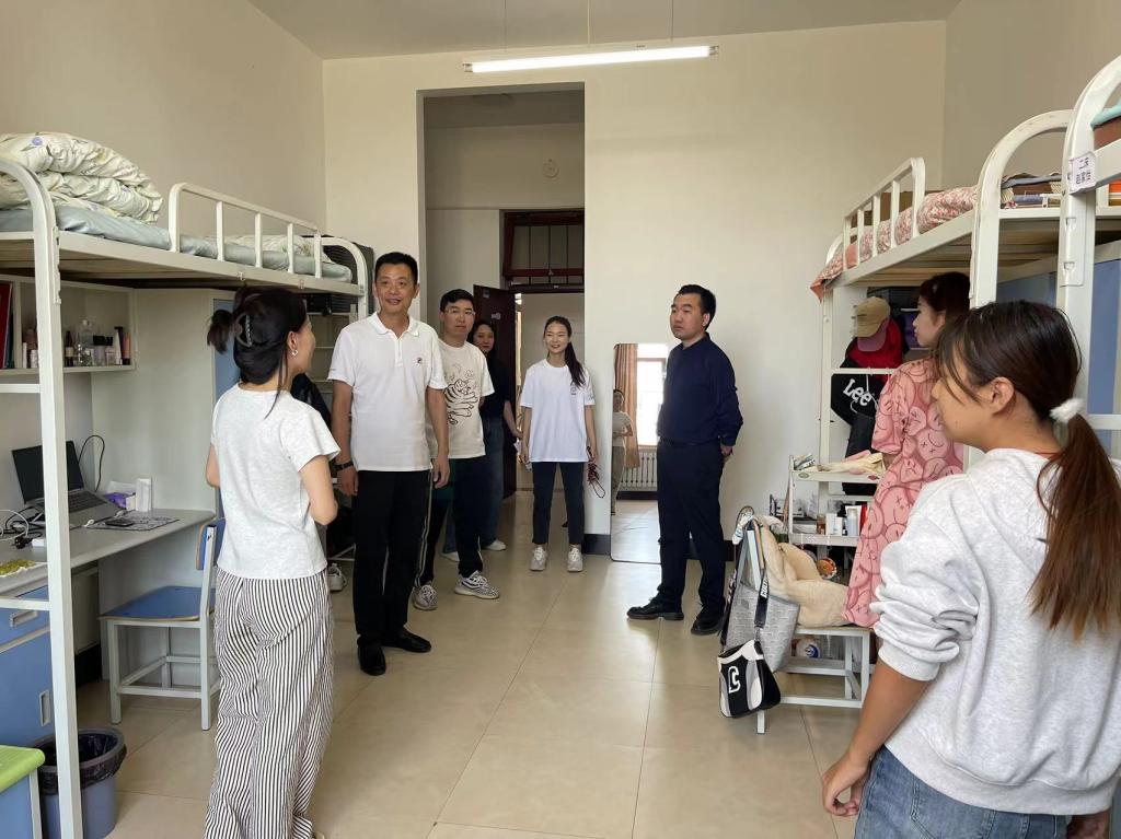 走访过程中,王伟强亲切地询问2023级学生来校后的生活及学习情况,耐心地解答新生们提出的各种问题,帮助其解决生活困难,提醒同学们要提高安全防患意识,叮嘱寝室成员是一家人,希望同学们以学校为家,以寝室为家,共同营造良好的寝室环境和氛围,并鼓励同学们,自身的成长和成才需要付出辛勤的汗水和脚踏实地的努力,希望同学们遵守校规校纪,能以更加积极的态度迎接新生活,加强学习,不断进取。