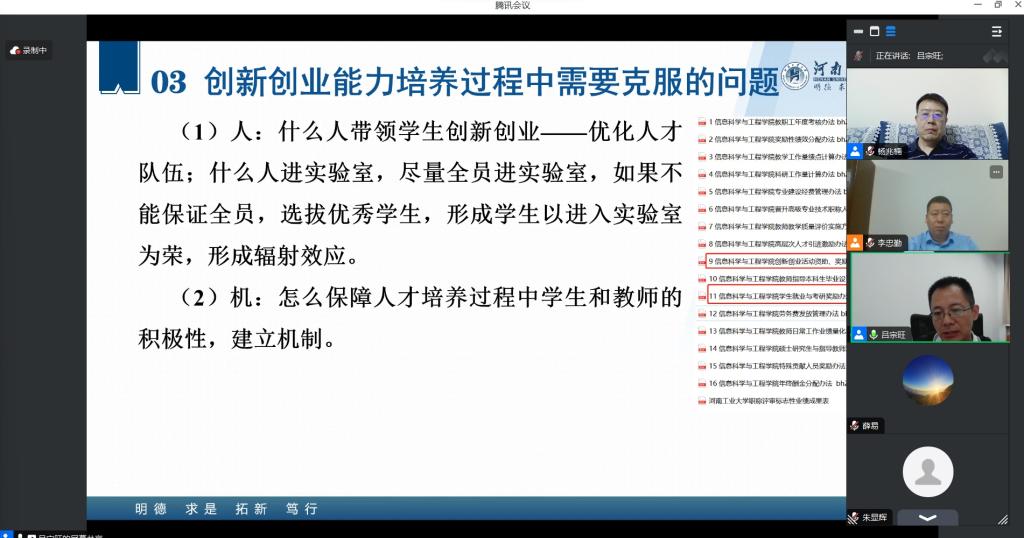 为了提升乐鱼网站_乐鱼(中国)大学生创新创业能力,提高教师指导大学生创新创业项目的工作成效,9月21日,创新创业学院与电气与控制工程学院共同邀请河南工业大学吕宗旺教授通过线上的形式做了关于“提升大学生创新创业能力的培养策略”的交流报告。报告从创新人才培养面临的问题出发,提出了从“人、机、物、法”四个方面破解问题的方法,并通过亲身实践的详实案例和做法为大家展示了如何培养创新型人才的路径,为乐鱼网站_乐鱼(中国)教师提供了良好的借鉴和启发。最后与会教师关于创新实验班和创新实验室建设方面与吕教授进行了深入交流。
