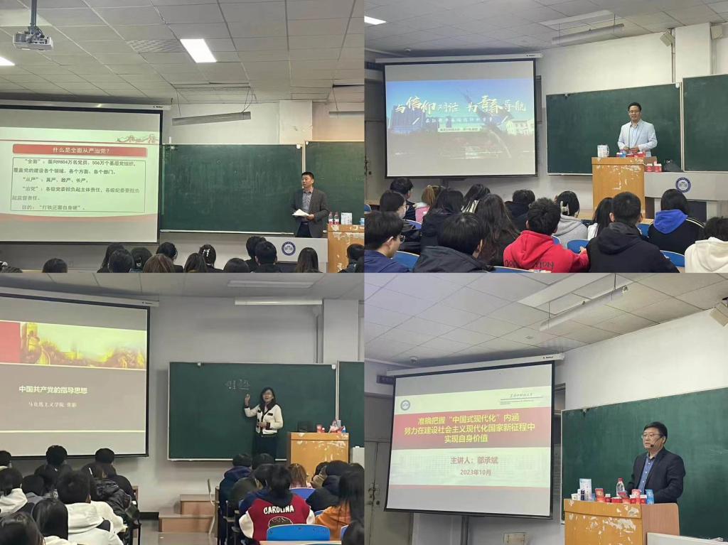 机械学院党委书记吕刚从“全面从严治党”内容出发,强调要落实新时代党的建设总要求,健全全面从严治党体系,全面推进党的自我净化、自我完善、自我革新、自我提高,使我们党坚守初心使命,始终成为中国特色社会主义事业的坚强领导核心。发展规划处副处长李一鸣通过红歌引导学生感悟信仰的力量,在与红色音乐交流中,沉浸式体验音乐党课的魅力,点燃了学员们内心干事创业激情,凝聚起了强大的奋进力量。马克思主义学院党委书记张影系统地介绍了中国共产党的指导思想体系,并强调了这些思想在中国共产党历史发展中的地位和作用,同时教育学员树立远大的共产主义目标,加强理论知识的学习,提高政治理论素养。学生处处长、学工部部长邬承斌以“准确把握‘中国式现代化’内涵,努力在建设社会主义现代化国家新征程中实现自身价值”为主题,引经据典、深入浅出的生动讲解,让学员们深刻体会到中国式现代化的特征、优势与历史必然,加深了学员们对中国共产党的中心任务的深入理解,更加坚定了“四个自信”和“两个维护”,提升了学员们的党性素养。