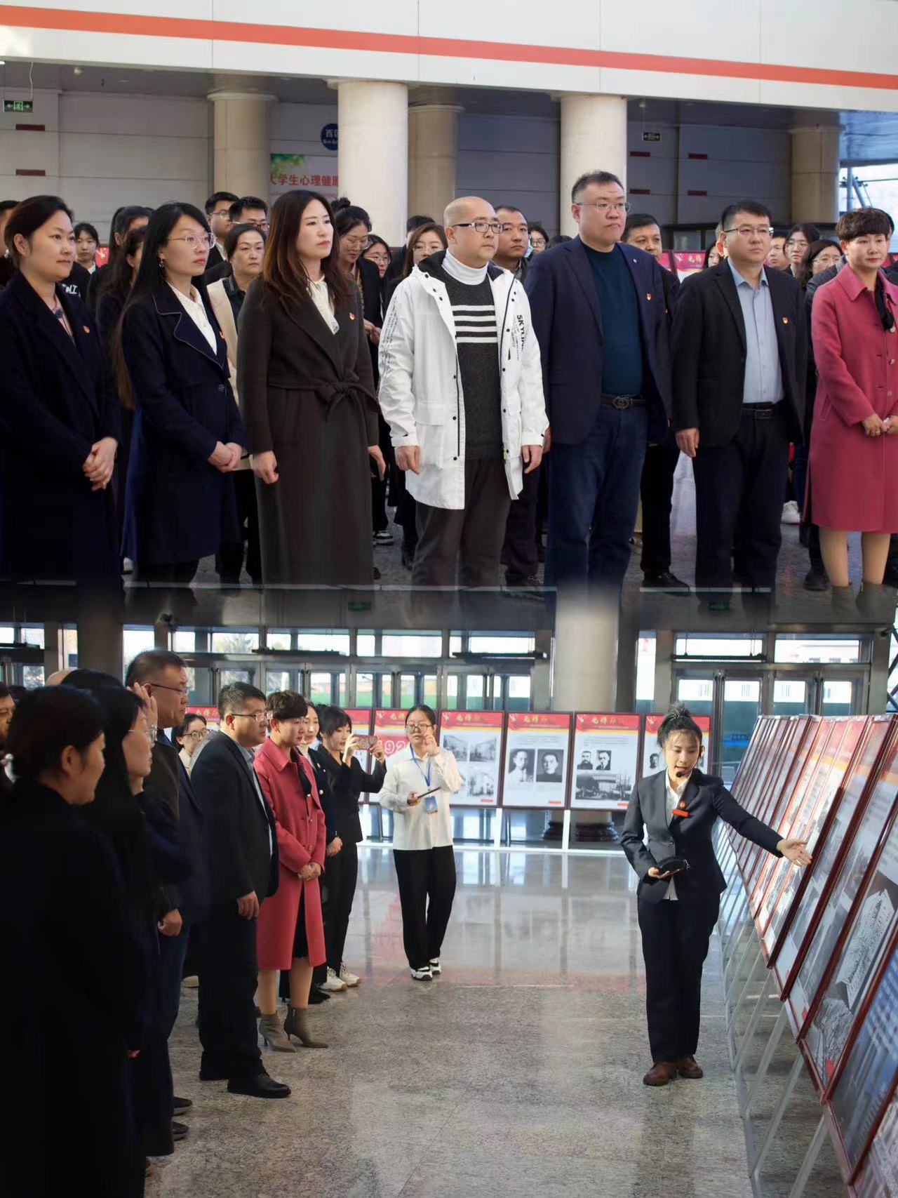 为纪念中共哈尔滨组成立100周年,激励广大师生党员在哈尔滨百年奋斗史、革命史的“红色革命基因”中感悟共产党人的初心使命,汲取前行动力,10月26日机关党委与管理学院党委联合哈尔滨党史纪念馆在阳光大厅共同组织开展了“追寻红色足迹 汲取奋进力量”——纪念中共哈尔滨组成立100周年光辉历程百图展主题党日活动。校党委组织部副部长林松、机关党委支部成员、管理学院党委领导班子及学院党支部师生党员80余人参加本次活动,活动由管理学院党委副书记徐海英主持。