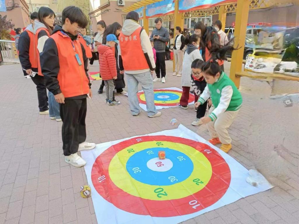 本次志愿服务活动志愿者们有幸参与了落地在安祥社区抚顺街道的中国金融教育发展基金会“金社工程”项目和共青团团中央“伙伴计划”示范项目“团团活力圈”中。志愿者们身着“橙马甲”,协助社区工作人员将金融教育宣传主题横幅、项目标牌、展示板安装好,把社区公共空间打造成社区金融教室。多形式、多角度向社区居民科普金融安全知识,讲解相关法律法规,让社区居民全方位地了解到资金稳定的重要性,增强了自身防范风险的能力,为营浓浓厚的金融安全稳定氛围奠定基础。在“团团活力圈”项目中志愿者们设计了投壶、丢沙包、彩虹伞和撕尾巴四个趣味体育项目,让社区青少年参与到游戏中来感受到传统文化活动的魅力,引导社区青少年以一种欢乐新颖的方式参与体育锻炼、远离电子产品。