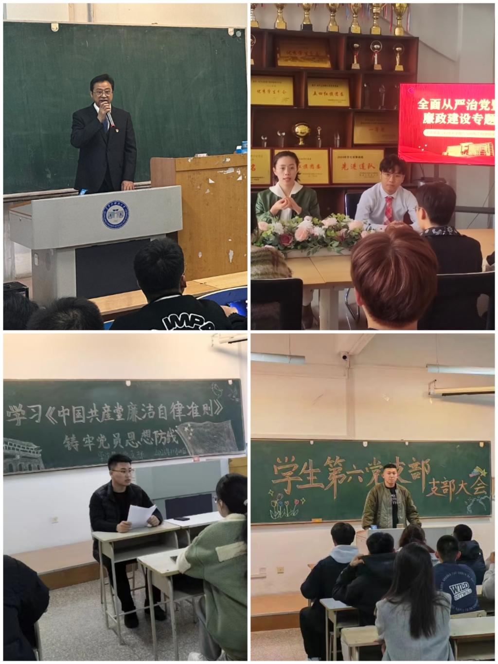 补足精神之钙,修好廉政“必修课”。依托党委理论学习中心组理论学习、党支部书记专题培训、专题辅导报告等形式,带领师生深入学习习近平总书记关于全面从严治党、党风廉政建设和反腐败斗争、廉洁文化建设和党的自我革命的重要论述、重要讲话和指示精神;组织师生党员线上参观中国共产党纪律建设历史陈列数字展馆,接受革命传统教育和廉政党史教育,不断强化理论武装,激发奋进动能;通过学院党校党课教育平台,结合党规、党纪、学生管理规定考风考纪等内容,对学生党员、入党积极分子开展纪律教育,进一步增强纪律教育的说服力和感召力。