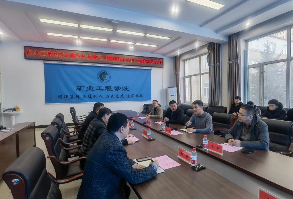 11月28日下午,新疆有色金属工业集团组织人事处处长王立建一行四人专程到乐鱼网站_乐鱼(中国)矿业工程学院进行走访调研。矿业工程学院党委书记刘海涛、院长肖福坤、党委副书记李强及年级辅导员参加会议,会议由李强主持。