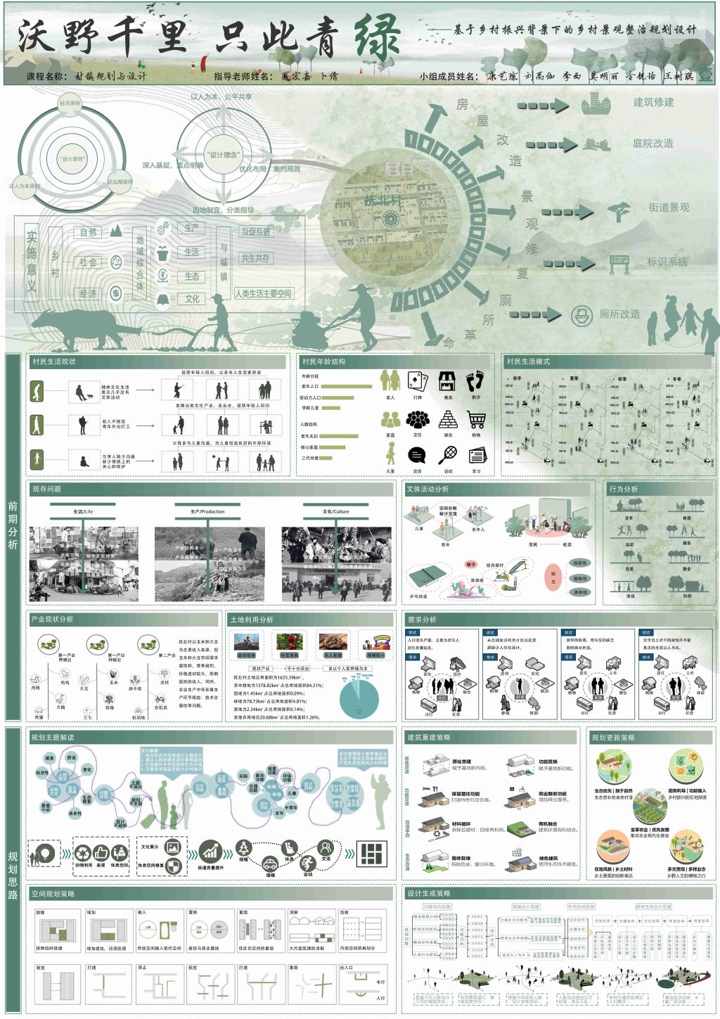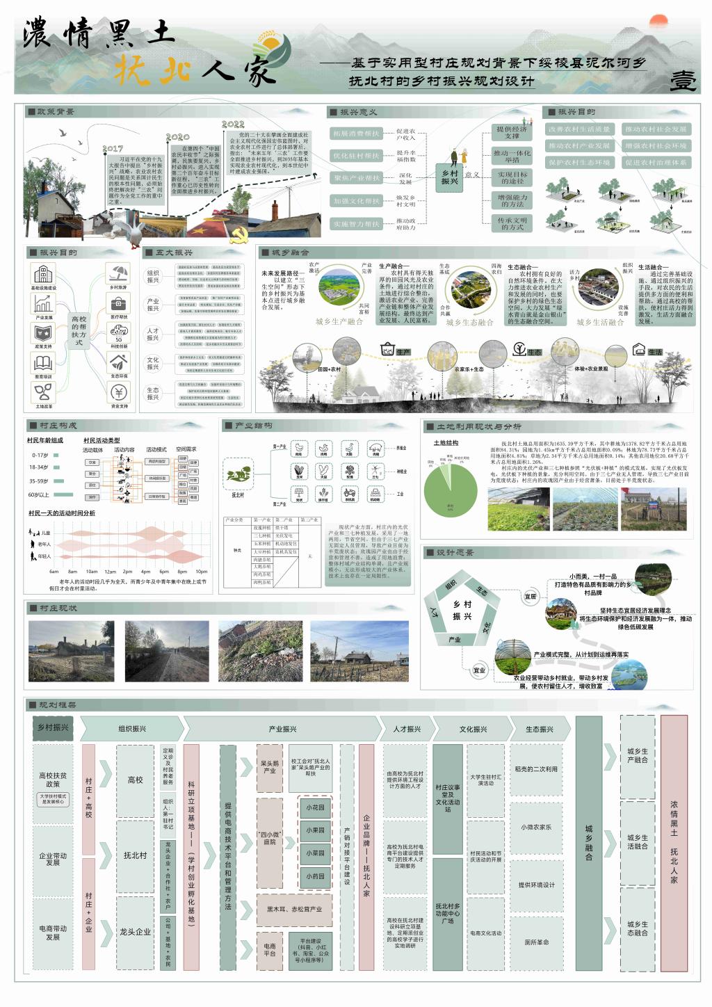 汇报会上,各小组负责人围绕组织振兴、产业振兴、人才振兴、文化振兴、生态振兴等方面,按照整体设计规划、实用性村庄规划、乡村振兴规划、公共服务设施与基础设施专项规划以及景观系统规划等5个细分专题方向,用图文并茂的方式对规划成果进行了汇报和展示。规划成果紧密结合抚北村地理、人文、人口、产业等实际,为抚北村乡村振兴进行了全方位规划,为未来乡村发展提供了高质量的设计方案。充分体现了城乡规划专业师生党员的专业素养和实践能力,展现了当代大学生在乡村振兴工作中的担当和作为。