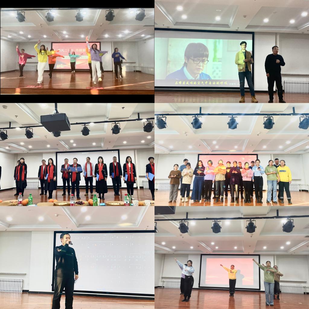 舞蹈《天天向上》、《科目三》等节目展示了教职工们的青春活力;歌曲《众人划桨开大船》、《夕阳红》、《十年》、《水手》温馨感人;诗朗诵《初心》、三句半《夸夸咱们好学院》激励着全体教师在党的二十大精神指引下,不忘教育初心,勇担育人使命的信念。游戏《你画我猜》、《成群结队》、《小鸡下蛋》和观众最喜爱的节目评选将整场联欢会推向高潮。