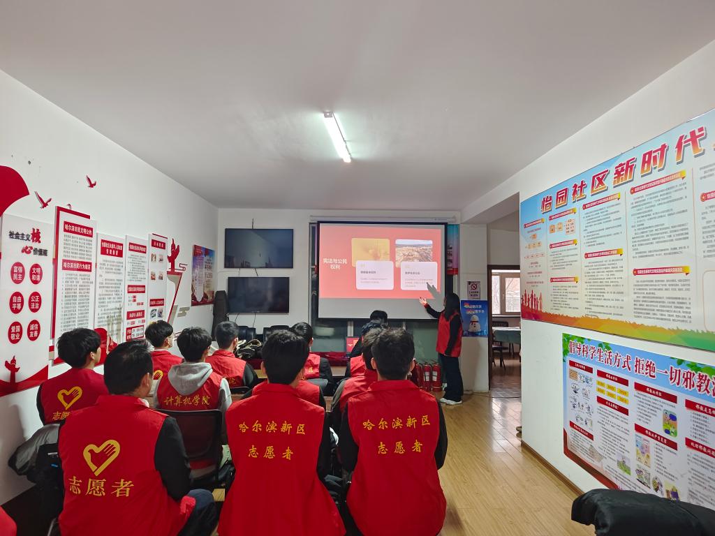 “青”心聚力,普法有我。志愿者们提前制作《宣传宪法知识维护宪法权威》PPT,与社区人员分享学习宪法知识的心得。结合专业特长,设计制作宪法宣传单,并在社区进行发放,为社区居民开展法治文化宣传活动,引导大家通过法律手段解决问题,维护自身合法权益。