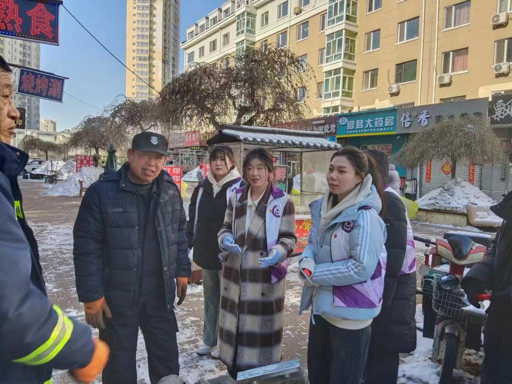 “青”暖社区,普及理论宣讲。学院青年志愿者们携手社区工作人员为社区居民开展消防知识安全和电安全宣讲,同时倡导沿街商铺经营者自觉维护社区卫生和市容市貌,树立良好的生态文明理念,弘扬共筑美好生活的时代新风。