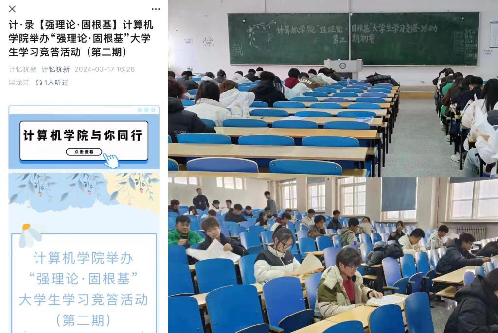 观看两会视频,悟透两会精神。3月6日,计算机学院组织全体学生统一观看2024年全国两会视频,集中学习两会期间重要讲话、重要新闻、重点评论,号召学子将思想领悟化为拼搏奋进的动力,牢记使命,不断向前迈进,发挥自身优势,立足自身专业特长,将报告内容融入到学习生活中,引导学生思考如何在实现个人梦想的同时为国家繁荣贡献自己的青春力量。开展座谈研讨,交流心得感悟。3月8日,学院在朝阳楼十楼开展学习领悟两会思想专题座谈会,辅导员张宇智带领学生认真学习两会精神的同时结合自身工作与学习实际,畅谈学习政府工作报告的心得体会,引导学生将学习贯彻两会精神落到实处,不忘初心、勇毅前行,把个人发展同国家、民族的前途命运紧密相连,以实际行动迎接挑战,助力国家发展。举办竞答比赛,点燃学习热情。3月15日,计算机学院在主楼ES0304举办“强理论·固根基”竞答比赛。初赛采取闭卷考试形式进行,竞赛题目既考察了参赛学生对两会精神的理解,又考察了对党方针政策的掌握程度。竞赛的顺利开展牢牢把握“学思想、强党性、重实践、建新功”总要求,营造浓厚氛围,点燃学习热情,努力在以学铸魂、以学增智、以学正风、以学促干方面取得实在成效。