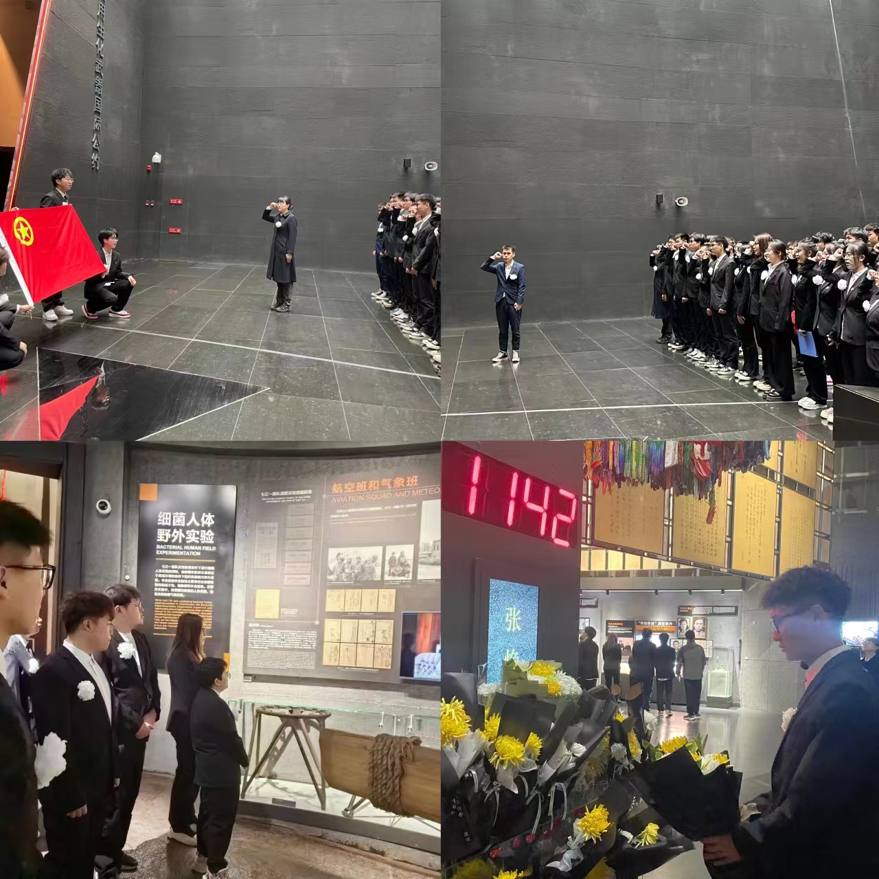 活动现场,同学们安静肃立在遗址前,通过默哀、敬献鲜花等形式表达了对先辈的缅怀之情。团委副书记高晓研向先辈献词,表达崇敬,寄托哀思。朱海璐老师和姜雷老师带领全体团员重温入团誓词。随后,大家参观了陈列馆与遗址,身临其境感受中华民族曾遭受的苦难。“没有一个中国人能够平静地走出这里”整个参观过程,同学们无不为侵华日军的暴行而感到愤慨,纷纷表示要不懈奋斗,自强不息,为国家的强盛贡献自己的力量!