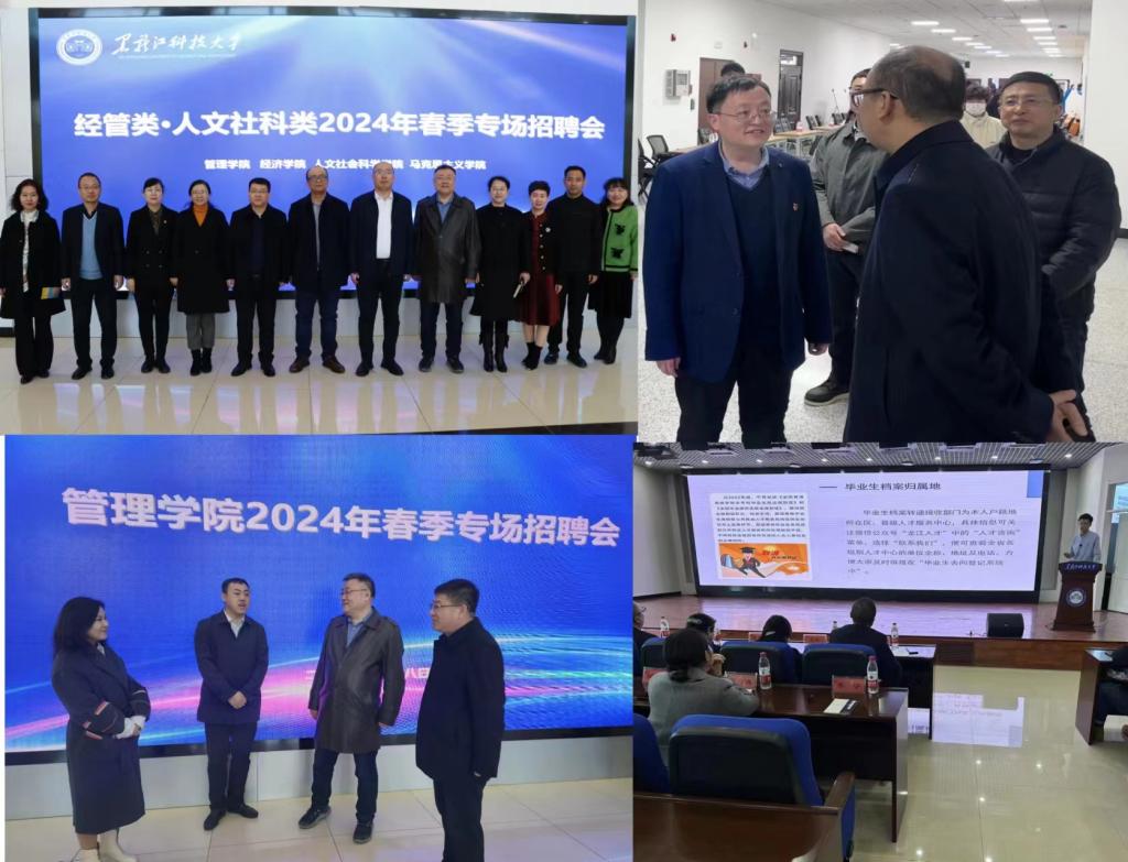 为深入贯彻落实党中央、国务院关于做好“六稳”工作、落实“六保”任务中“稳就业”“保就业”决策部署,按照学校深入推进2024届毕业生就业工作的总体要求,抢抓“金三银四”就业黄金期,聚合政府、企业、高校三方资源,全力促进2024届毕业生充分就业,在前期高质效联合访企拓岗的基础上,4月8日上午,管理学院、经济学院、人文学院、马克思主义学院在朝阳楼一楼联合举办了经管类·人文社科类2024年春季专场招聘会。哈尔滨松北区委组织部副部长王喆,松北区民社局人力资源和社会保障服务中心副主任丁宁,道外区委统战部副部长刘艳,民建道外五支部副主委徐景宇,学校招生就业处处长高志刚、副处长刘维华、有关学院党政领导、毕业年级辅导员(班主任)、专业负责人等参加招聘会。