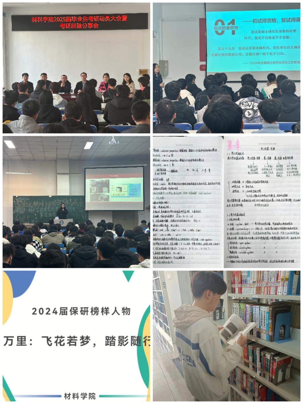 学风端正书声扬,博学笃行谱华章。为进一步坚持以学生为中心,坚持多管齐下,帮助学生解决现阶段升学出现的问题,学院4月2日开展2024届毕业生“筑梦启航,一‘研’为定”考研复试、调剂指导讲座;4月20日-4月23日开展“书香润心灵,雅言溢校园”世界读书日系列活动,激发学生读书热情;4月9日-4月15日开展“笔记于行,学实于心”优秀学习笔记评选活动,进一步加强学风建设,引导学生勤学善思,形成梳理知识体系的良好习惯;4月12日开展“‘研’阵以待,筑梦未来”毕业生考研动员大会暨考研经验分享会,在学长与同学们的积极交流下,充分调动2025届考研学子的积极性,帮助学生了解考研形势,明确考研目标,增强考研信心;4月9日为满足考研学生参加研究生复试需求,解决同学们实际困难,学院设立研究生线上复试专用教室,给考研同学提供一个良好的线上复试环境;4月18日-4月23日开展“扬青春风华,赴星辰大海”保研学子风采展示活动,通过线上平台展现青年学子风貌,激励学生踔厉奋发、勇毅前行,助力走在研途道路上的学子劈波斩棘;4月15日开展国家奖学金获得者先进事迹宣讲活动,充分发挥榜样示范引领作用,展现优秀学生的成长故事和优秀事迹,促使我院学子以典范为镜,汲取精华,与卓越为伍。