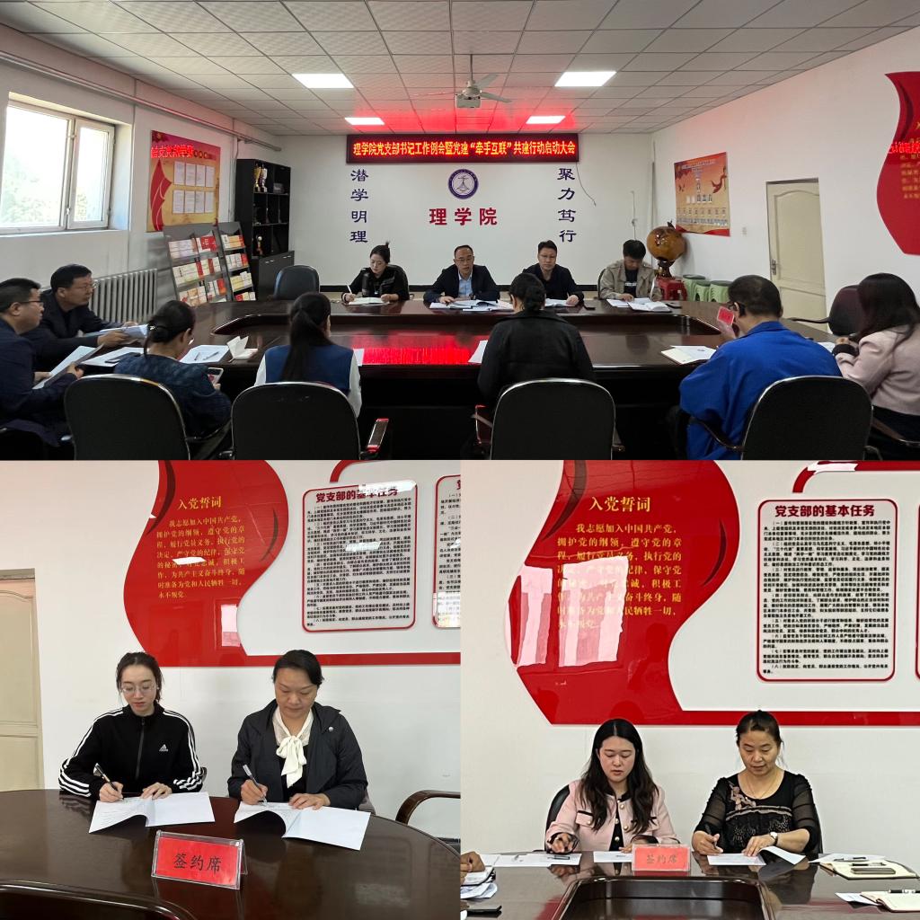 会上,党委副书记刘星彤宣读了《理学院党建“牵手互联”共建行动实施方案》,对党建共建行动做出具体部署和安排。学院各党支部书记分别介绍了党支部建设的基本情况,结合学院的学科特色,围绕共建共享内容、特色志愿服务等提出工作设想,并将党建工作融合于学科科研、教育教学、课程建设、人才培养等层面提出了共建活动的愿景。随后,教师党支部与学生党支部签订了《党支部“牵手互联”共建协议》。接下来,各个“牵手互联”行动工作组将按照组织联建、资源联享、人才联育、工作联促、发展联动的原则主动对接共建单位,加强与其他领域党组织服务和需求的良性互动。