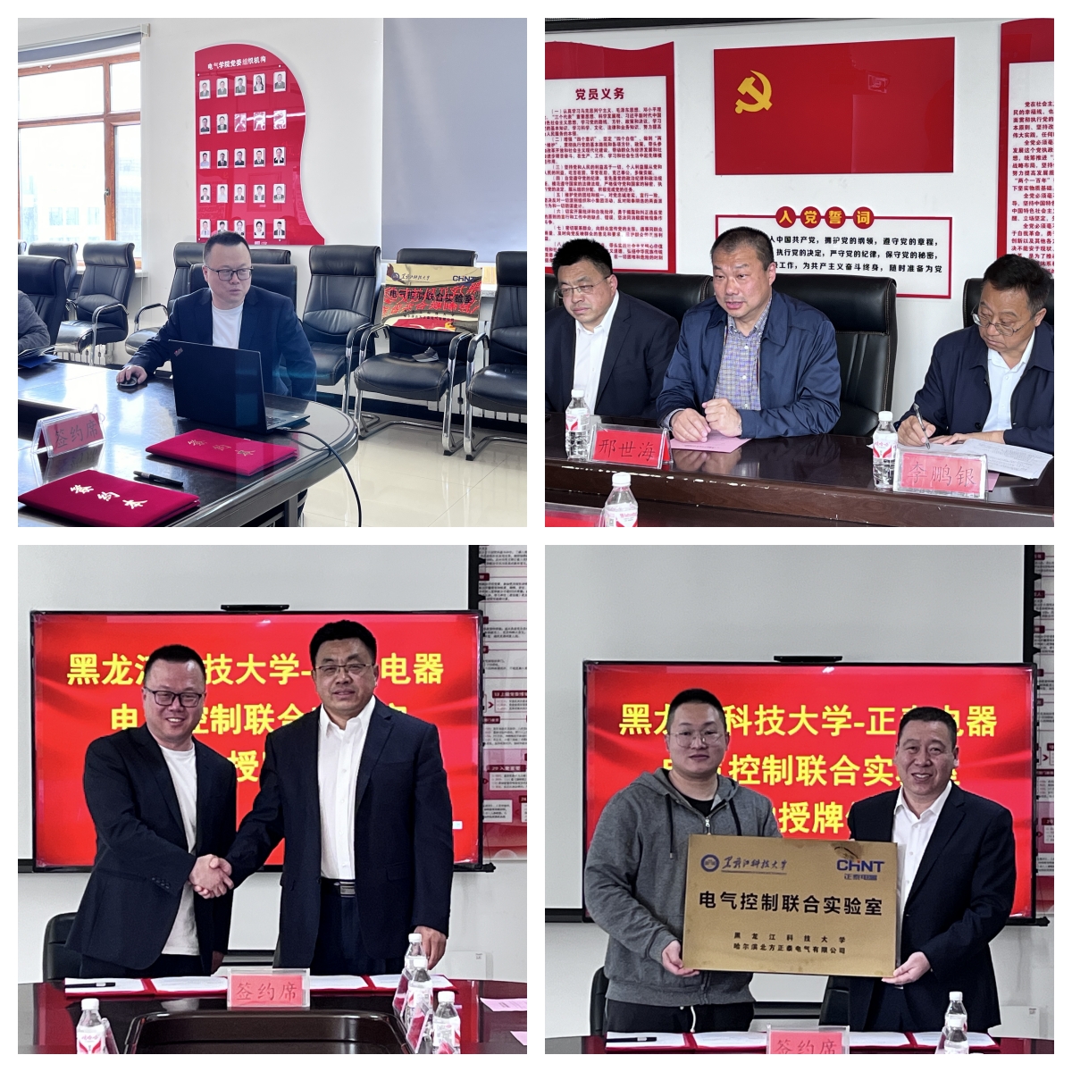 5月9日下午,电气学院与正泰电器在朝阳楼0607室举行电气控制联合实验室签约授牌仪式。学校教务处副处长邢世海、电气学院班子成员和部分教师代表、浙江正泰电器股份有限公司东北办事处和哈尔滨北方正泰电气有限公司有关负责人参加仪式。仪式由电气学院副院长李忠勤主持。
