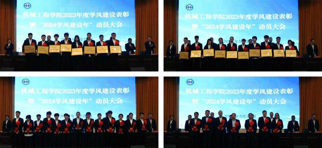 会上,副院长齐立涛宣读了《机械工程学院关于表彰2023年度学风建设先进集体和先进个人的决定》;与会领导向受表彰的先进集体和先进个人颁发了奖牌和荣誉证书;机械20-5班李伟瑛、第八公寓618寝室马克鑫、机械22-4班刘岸卓、机械21-5班班主任肖胜兵分别代表优良学风班级、学风建设标兵寝室、学习标兵和学风建设优秀班主任作了典型经验交流。