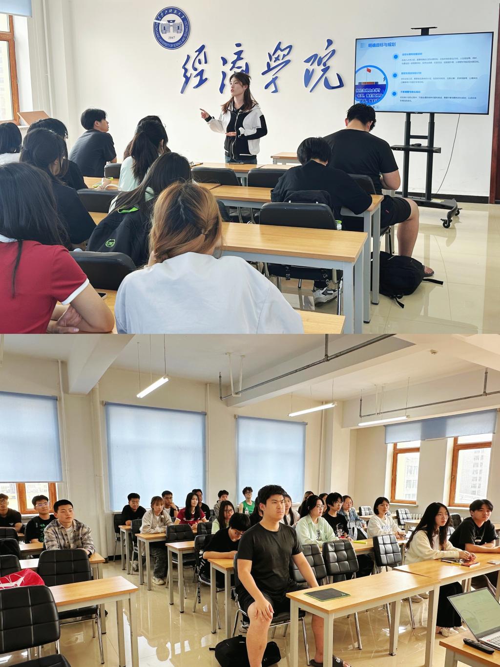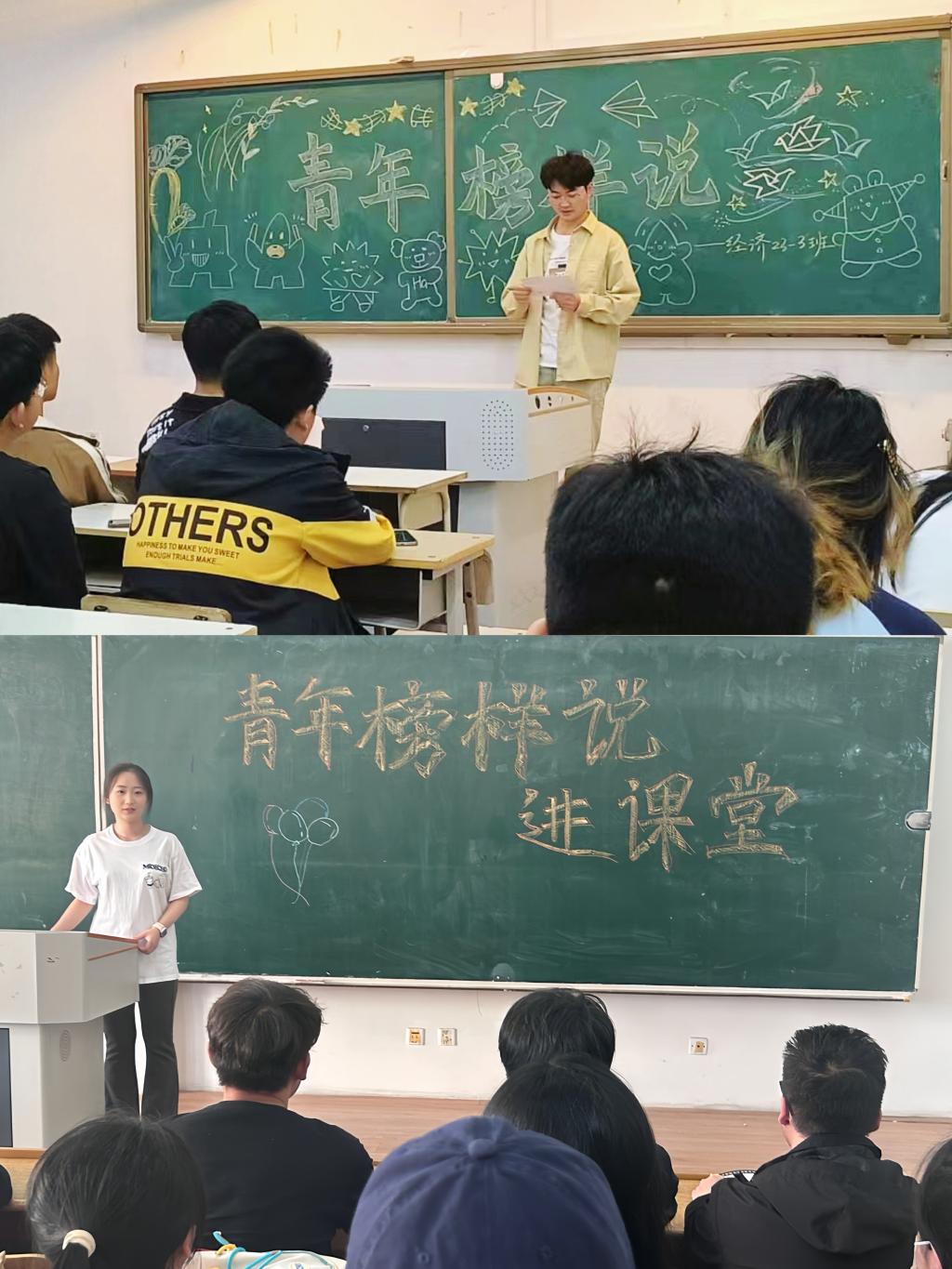 本次活动遴选优秀学生骨干组成经济学院“青春榜样讲师团”,走进大一学生课堂。他们结合自身成长历程,分享成长经历和奋斗感悟,讲述自己在学习、科研、实践等方面的所见所闻、所思所感,以学生之言解学生之惑,用学生之行励学生之志,激励同学们建功新时代,展现新作为。听课同学深受鼓舞,纷纷表示要以榜样为目标,脚踏实地、奋勇拼搏,用奋斗和奉献书写美好青春华章。