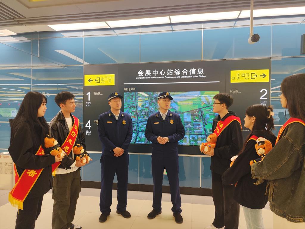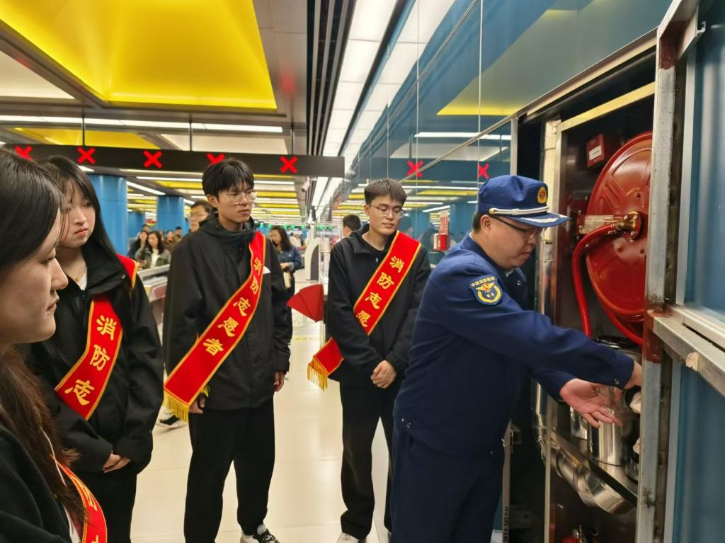 知识普及,消防护航。志愿者在地铁站内热情地向过往乘客发放消防安全宣传手册,并耐心地为乘客讲解手册中的火灾预防措施、遇到火灾时的正确应对方法以及如何正确使用消防器材等重要消防安全知识,通过消防知识普及提升广大市民安全意识,营造浓厚的消防安全氛围。