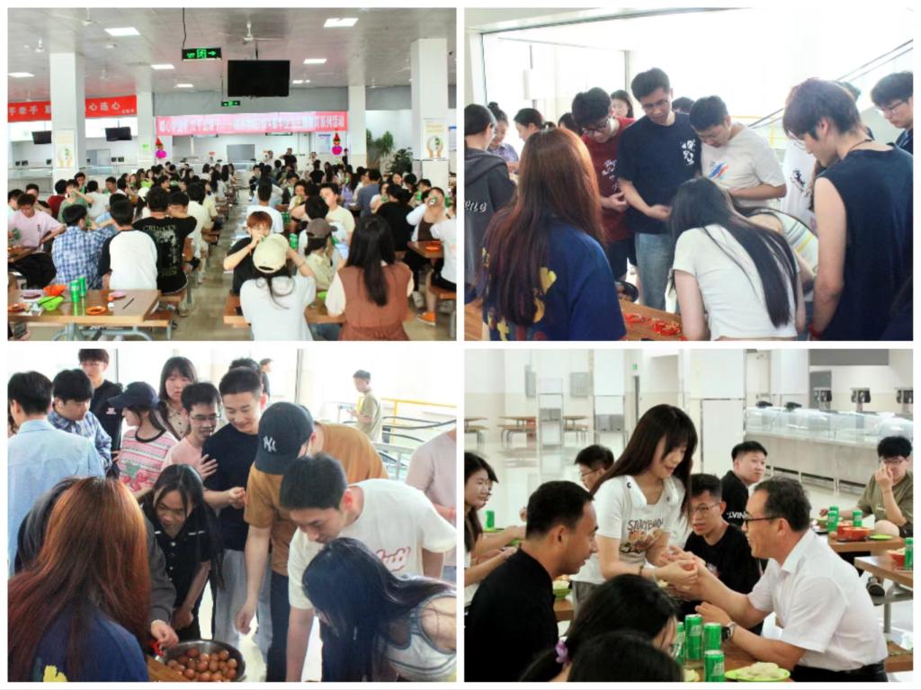 学院精心布置了“饺子宴”现场,院长孙永波、党委副书记邬丽群以及毕业班班主任为毕业生佩戴五彩绳、分发鸡蛋,与毕业生围坐一桌,共享浓情饺子,共序师生情谊。