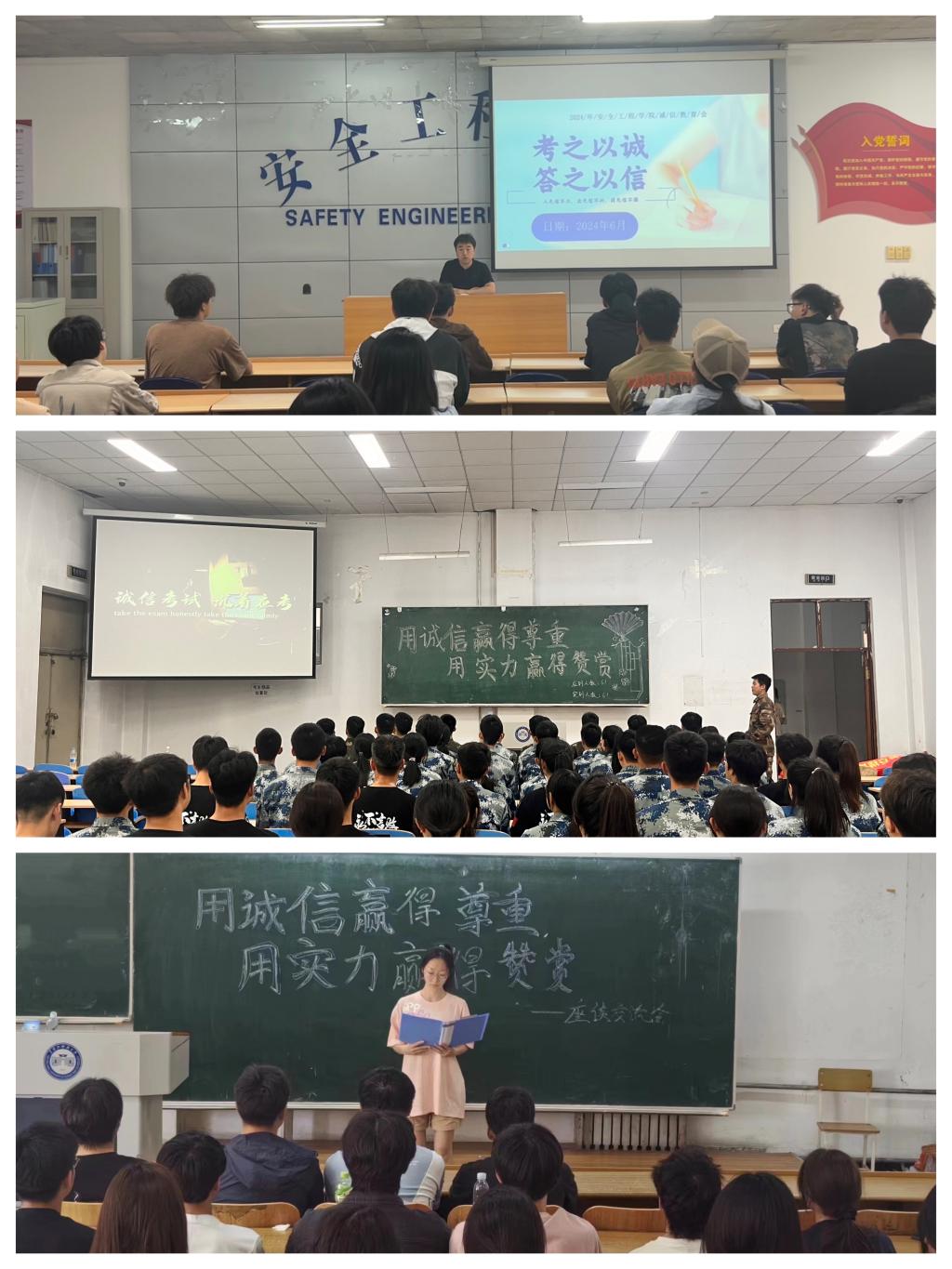 多层面研讨,凝聚诚信共识。环化学院团委组织开展“考试千万条,诚信第一条”主题研讨,学生们逐一表达了面临考试的感受,在交流中端正了心态,积极备考,以良好的精神风貌迎接考试;安全学院团委书记薛广鑫组织团学骨干以“立德修身,诚信笃行”为主题,领学了《中华优秀传统文化教育读本 诚信》一书,带领青年学生从学习、生活、交友、网络方面进行研讨,大家纷纷表示要践行诚实守信,实事求是,言行一致的传统美德,在火热的实践中展现出自信自强、刚健有为的精神风貌;材料学院团委、机械学院团委、大学生仪仗队团支部分别集中观看了《天才枪手》《守信少年》《诚信的较量》影片,在褒扬正面诚信典型,贬斥负面失信故事中,引导青年学生正视诚信问题,强化责任担当;管理学院团委、外国语学院团委分别开展“诚信促学风”“亦期·尔聆”诚信榜样事迹分享会,发挥引领示范作用,以朋辈榜样促进诚信之风;研究生学院团委发出了“坚守学术诚信,恪守科研道德”倡议,引领青年学生将诚信化为经常。
