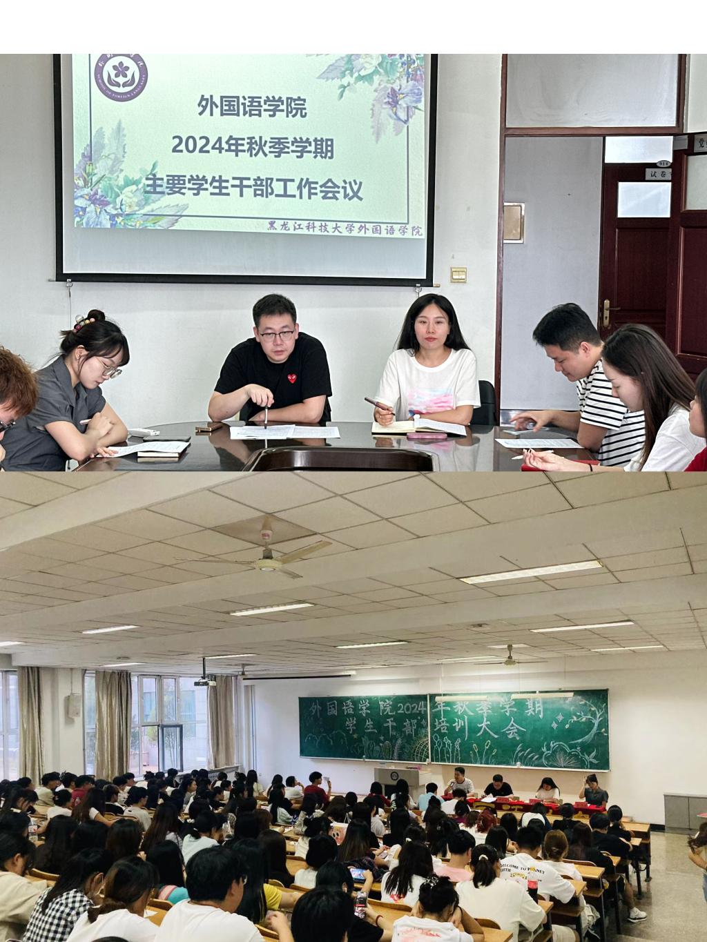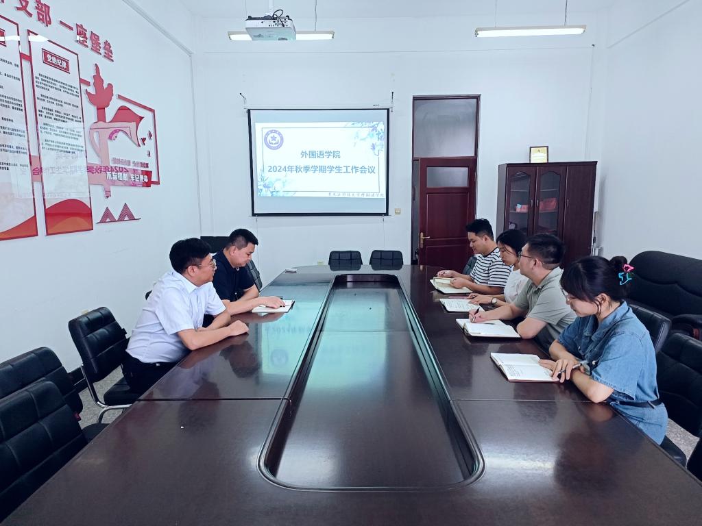8月19日,外国语学院组织召开新学期学生工作启动会议,对新学期学生日常教育管理工作进行了细化安排,党委书记张海涛、党委副书记李伟分别对2024级新生入学接待工作提出具体要求,力求实现“以生为本、热情周到、温馨和谐”的入学氛围。