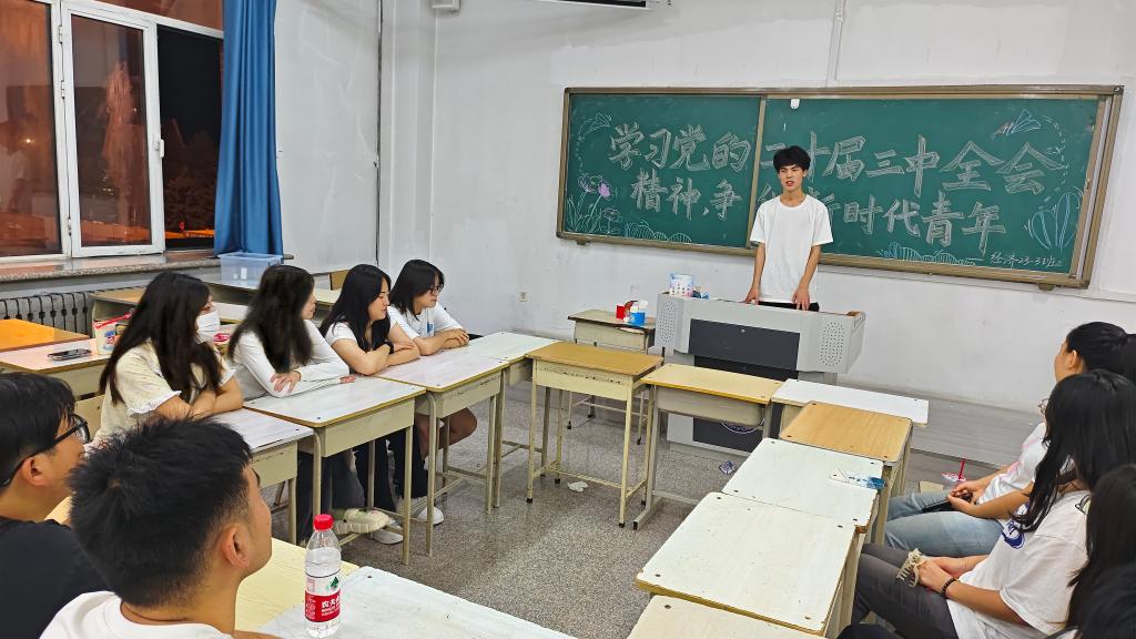 8月28日,经济学院各班级深入学习贯彻党的二十届三中全会精神。通过专题学习、研讨交流等形式,充分利用多媒体和数字化设备,多样化开展学习宣讲。原原本本学习党的二十届三中全会内容,深刻领悟会议精神。就“教育、科技、人才是中国式现代化的基础性、战略性支撑”展开讨论,表示中国式现代化为青年提供了广阔舞台。