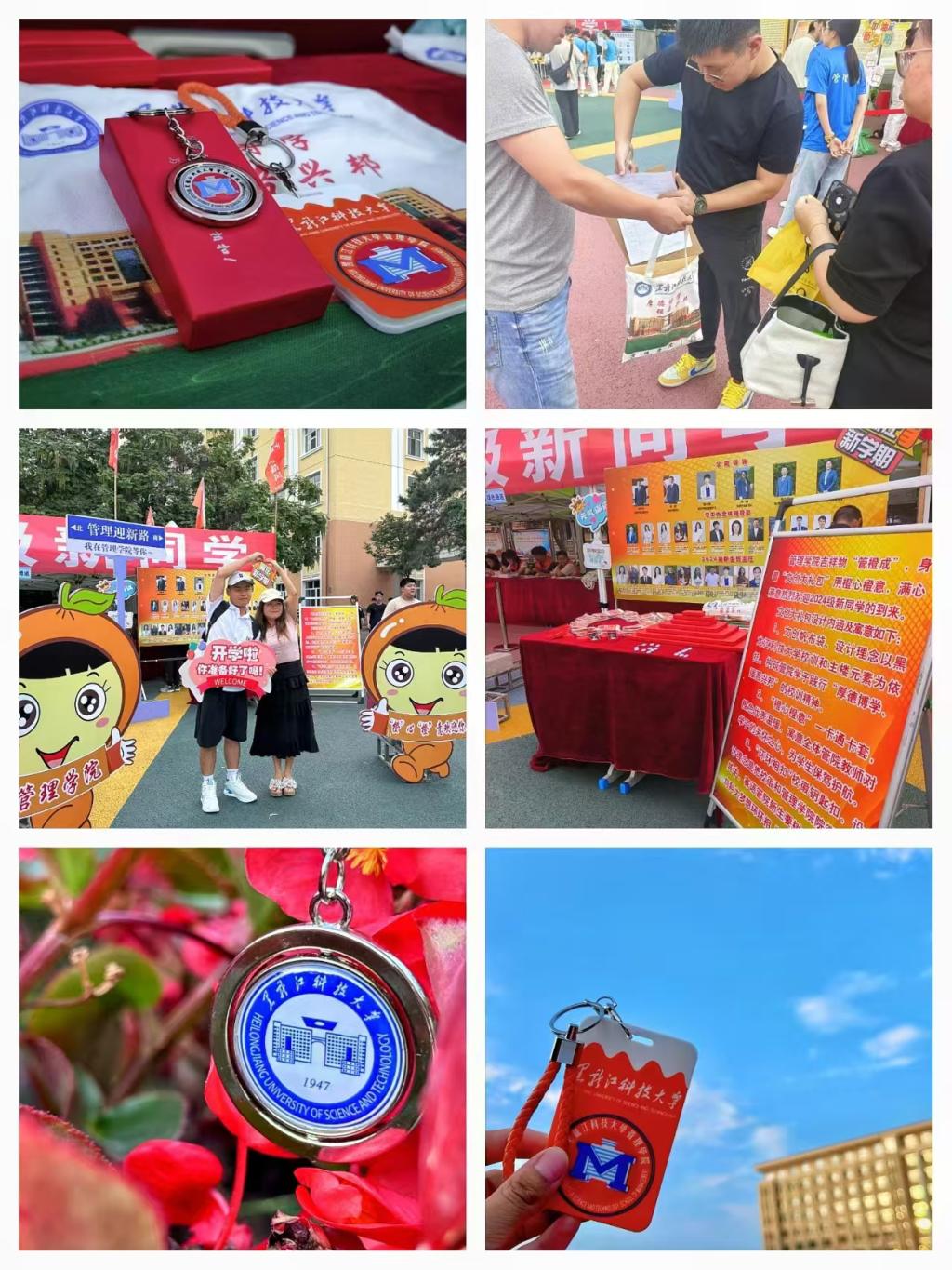 管理学院将文创大礼包融入迎新环节中,专门设置“文创礼包”领取点和展台以及报到打卡处,方便学生及家长合影留念,“橙心橙意”迎接2024级新生。