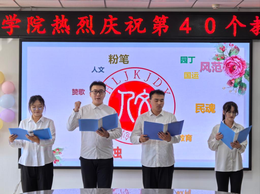 活动伊始,学院党委书记孙晓辉代表学院向全体教职工致以节日的祝福,真诚寄语全院教师要深刻领会习近平总书记对加快建设教育强国的谆谆教导,弘扬高尚师德,倾情教书育人,甘于乐业奉献,永葆仁爱之心,忠诚而深情地做一名“好老师”。