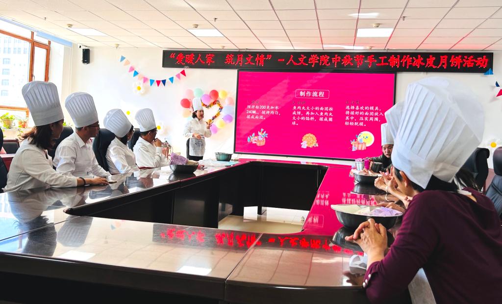 金秋九月,浓情中秋。为传承中华民族传统文化,不断增强学院教职工的获得感、幸福感和归属感,9月10日下午,人文学院工会在朝阳楼0317会议室举办了“爱暖人家 筑月文情”——庆祝中秋节暨冰皮月饼DIY活动,全体教职工参加。活动由学院工会女工委员李璐主持。