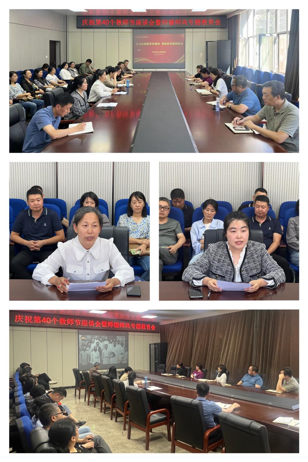 为庆祝第40个教师节,大力弘扬教育家精神,9月10日下午,马克思主义学院在科技大厦二楼会议室召开庆祝第40个教师节座谈会暨师德师风专题教育会。学院领导班子、没课的教职工参加会议。