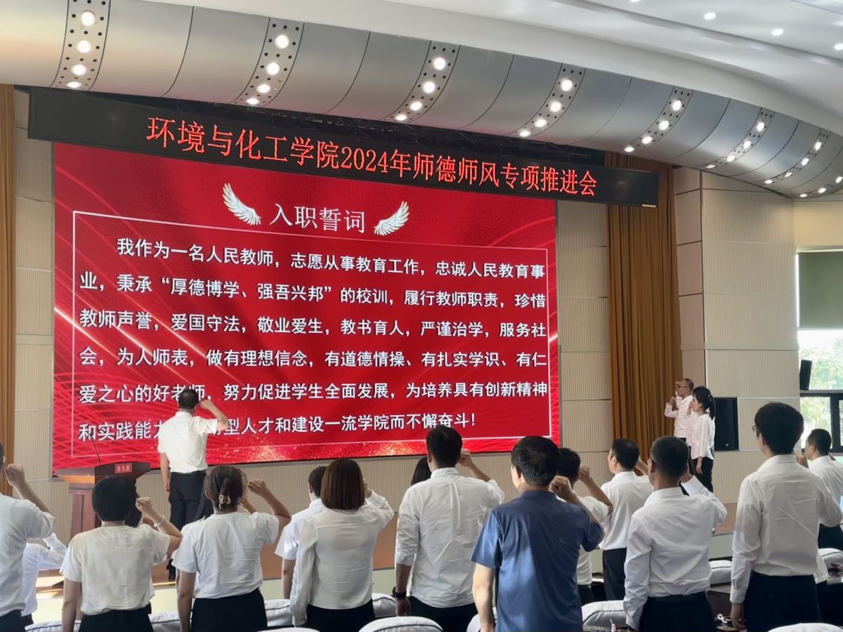 环化学院于9月10日下午在信息楼报告厅召开了2024年学院师德师风建设专项推进会。学院领导班子、全体教师及荣退教师代表参加了会议,会议由学院党委副书记樊晓东主持。