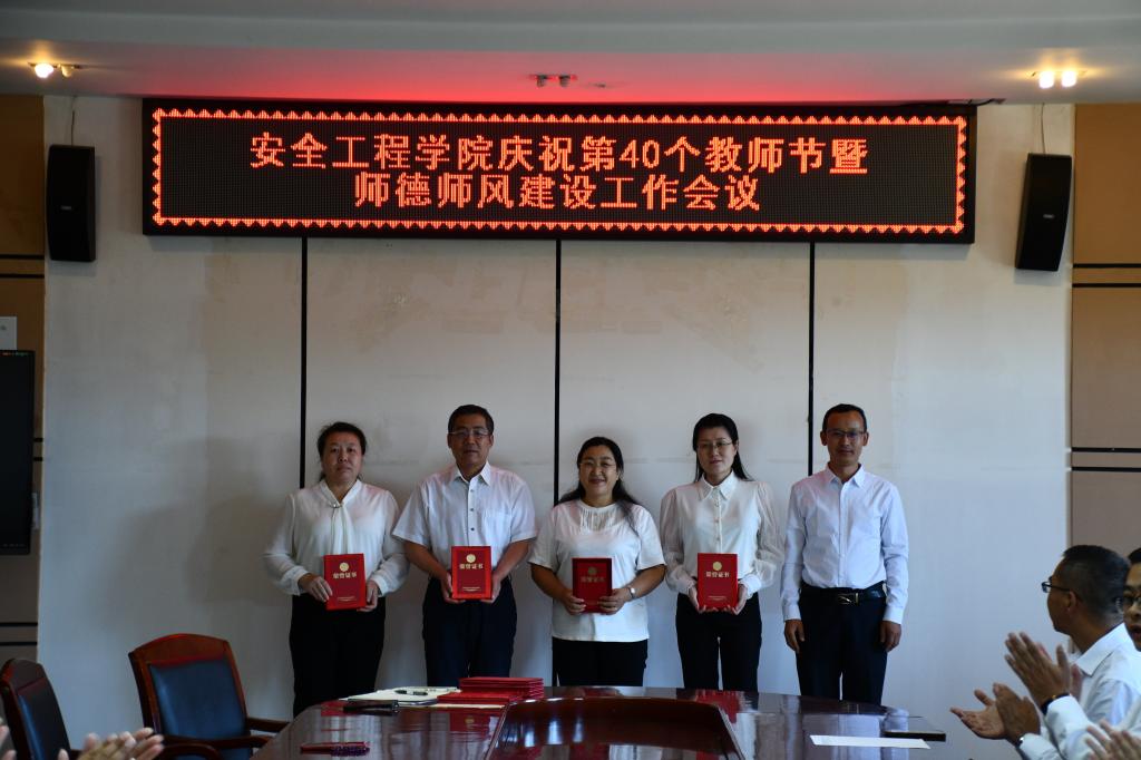 为庆祝第40个教师节,营造尊师重教的良好风尚,9月10日下午,安全工程学院组织召开了庆祝第40个教师节暨师德师风建设工作会议。学院全体教职工参加了会议,会议由学院党委副书记郑红岩主持。