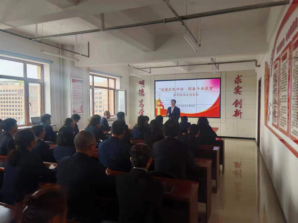 9月27日学院在“党员之家”朝阳楼0809室组织召开了“迎国庆促评估 同奋斗共筑梦”系列活动启动会议。电信学院党政班子成员、全体教职工参加会议。会议由电信学院党委书记齐秀强主持。学院院长杨庆江结合迎接本科教育教育评估对本次活动提出了具体要求,鼓励大家积极参加本次活动,促进学院高质量完成迎接审核评估各项工作。启动会议上为党建知识竞赛获奖党支部、获奖党员进行了颁奖。最后,学院党委书记齐秀强结合学习贯彻党的二十届三中全会精神为大家上了一堂微党课,并宣读了本次系列活动的目的和意义,要求学院党员干部和全体职工都要学习贯彻好党的二十届三中全会精神,不断提升党建工作质效,凝聚砥砺奋进的磅礴力量,为学院和学校的发展贡献力量。