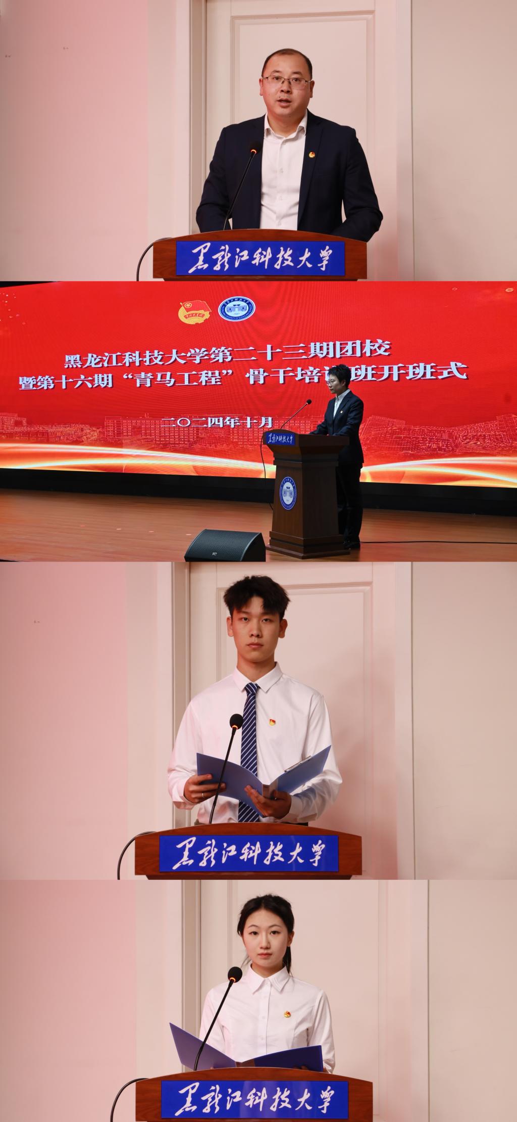 开班式上,校团委组织部负责人齐曦彤就第二十三期团校、第十六期“青马工程”骨干培训班、第二届团支部书记风采展示大赛等工作进行了安排部署;校团委副书记马紫微为第十六期“青马工程”骨干培训班授了班旗,并为第二十三期团校班主任颁发了聘书;校基层团组织建设服务中心主任逄博、管理学院财会S2024班团支部书记孙梓涵分别代表“青马”班学员和团校学员作了表态发言;校团委书记宋玉彬强调了举办团校和青马培训班的重要意义,对全体参训学员提出了明确要求。