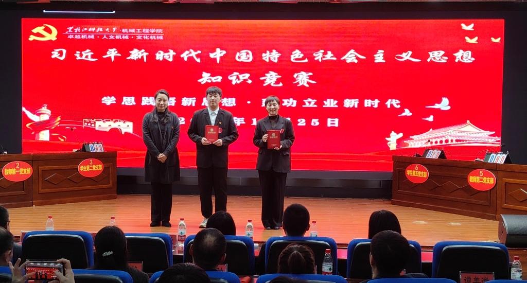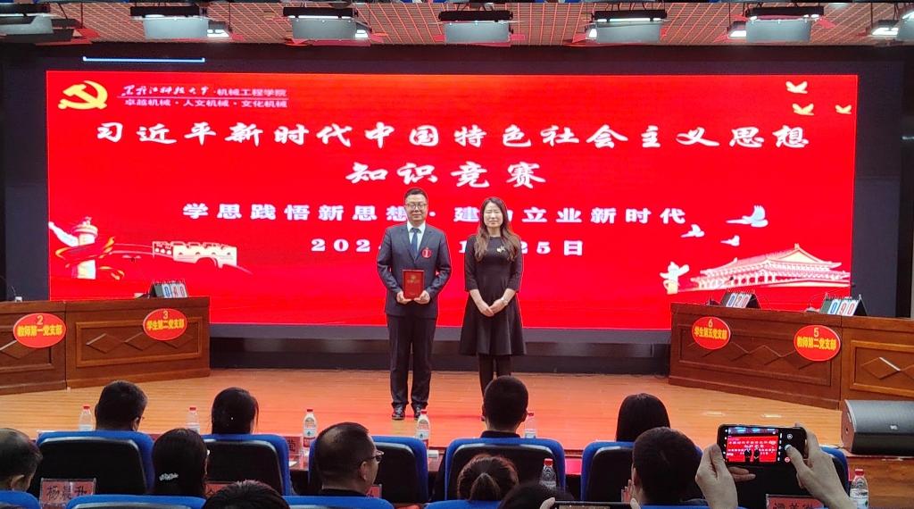 决赛现场共设置:初露锋芒(个人必答题)、同舟共济(团队必答题)、争分夺秒(抢答题)、背水一战(风险题)4个环节,重点围绕知识的深入理解和活学活用出题,题目更新颖;教师党支部和学生党支部同台PK,看点更夺目;随机抽题、轮流答题、急速抢答、决胜挑战,赛程更精彩。经过前两个环节的激烈比拼,选手们应答如流,展现了扎实的知识储备和显著的学习成果,各队比分不相上下。紧张刺激的抢答题环节紧随而来,比赛开始进入白热化阶段,各队队员眼疾手快、争分夺秒,抢答器的响声此起彼伏,上演着一场紧张刺激的“抢分大战”。几轮激烈的角逐后,比赛进入最后“背水一战”环节,面对机遇与风险的双重挑战,伴随着紧张的答题倒计时,选手们沉着冷静、密切配合。最终,教师第一党支部荣获一等奖;教师第二党支部、学生第三党支部荣获二等奖;学生第一党支部、学生第二党支部、学生第五党支部荣获三等奖。