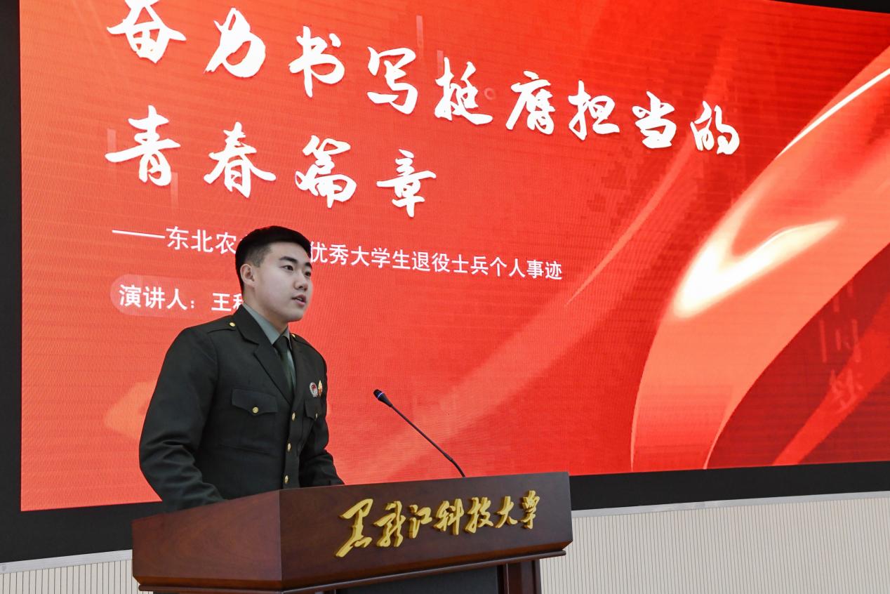 为进一步发挥黑龙江省入伍大学生士兵典型引领示范作用,弘扬青年学子投笔从戎、建功军营的新时代精神风貌,充分调动大学生应征入伍积极性,做好学校征兵政策普及工作,根据省教育厅、省征兵办的工作安排,11月29日下午,乐鱼网站_乐鱼(中国)举办了省高校退役大学生士兵事迹报告巡讲暨征兵政策宣讲会。
