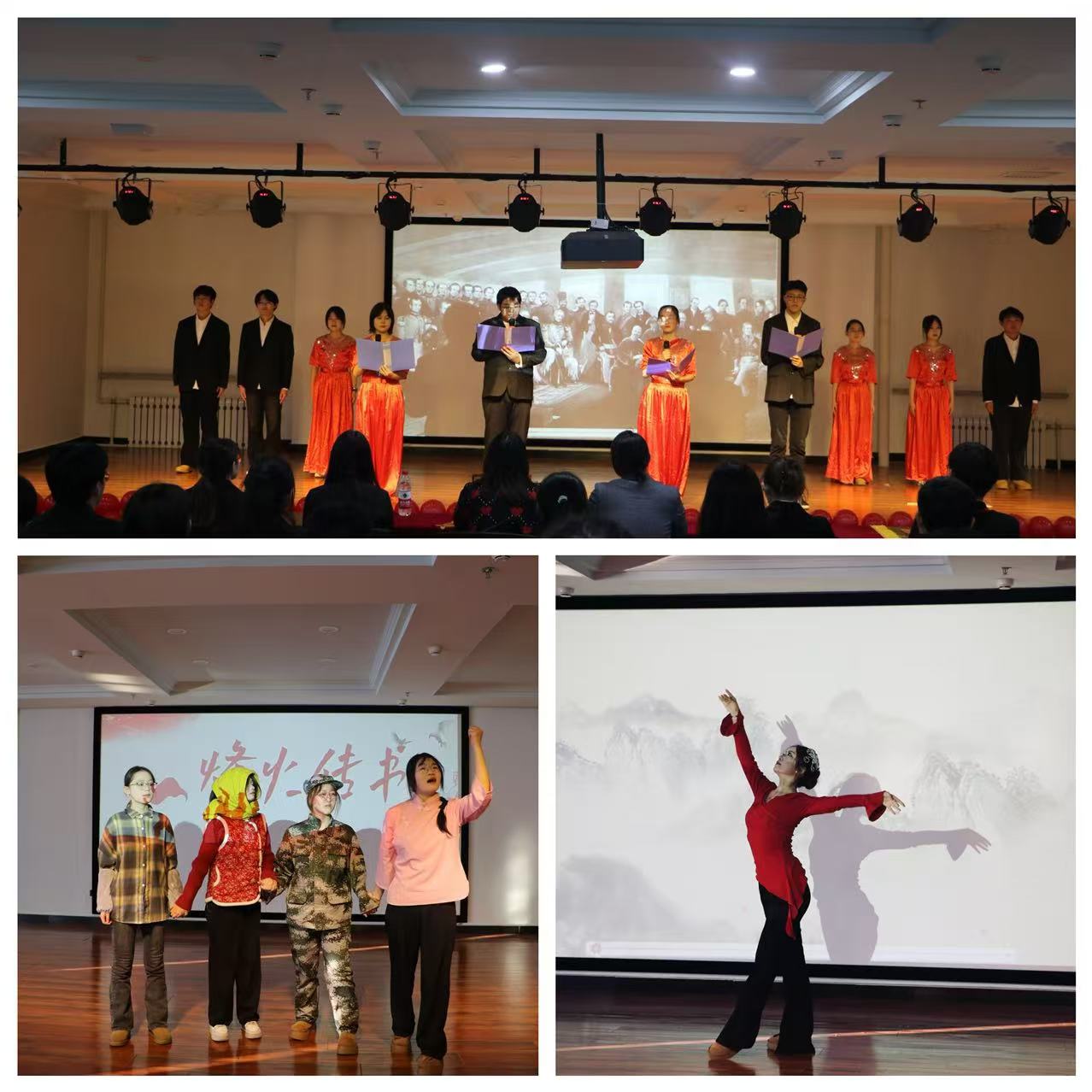 赤焰烽火忆峥嵘。文艺汇演以话剧《烽火传书》开篇,纸短情长,家书万金,话剧重现深厚的历史记忆、浓烈的爱国情怀以及不朽的革命精神,时刻激励着当代青年砥砺奋进。独舞《绒花》以昂扬之姿舞出青春风采,以战斗之态不负热血年华。朗诵《青春中国》,声声入耳,声声动情,“大写的中国”“腾飞的中国”诵出当代青年对祖国的热爱与担当。