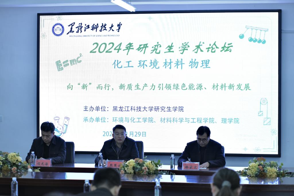 为激发研究生科研热情,培养研究生创新精神,提升学术氛围,11月29日,由环境与化工学院、材料科学与工程学院、理学院联合组织的“化工、环境、材料、物理学科2024年研究生学术论坛”在环化学院412报告厅如期举办。环化学院院长熊楚安、材料学院院长徐家文、理学院副院长闫龙海以及来自三个学院的导师、研究生70余人参与此次论坛。论坛以“向‘新’而行,新质生产力引领绿色能源、材料新发展”为主题,跨学科合作交流,在化工、环境、物理和材料领域中对绿色能源的发展新路径,新技术、新材料展开广泛探索。