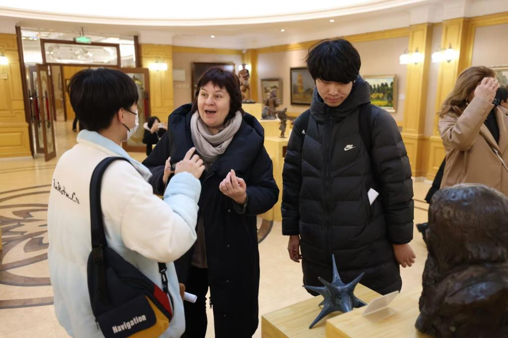 期间,俄籍专家着重介绍了2幅画作背后的俄罗斯历史文化故事、画家创作灵感、绘画技巧特点以及所蕴含的中俄文化交融元素,学生们不时向专家提问,深入地理解作品背后的故事和情感,切实感受俄罗斯艺术家们对美的追求和对生活的热爱。
