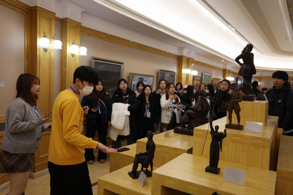 活动开始,韩建民馆长简要介绍了馆藏情况,盛情邀请师生欣赏俄罗斯艺术家的精美画作。外国语学院党委书记张海涛对韩建民馆长的热情接待表示感谢!他强调,本次参观活动是一次审美教育,能让学生感知美、体验美、理解美、实践美、创造美,有助于激发创新思维和想象力,提升学生的审美和人文素养,是一次非常有益的教学拓展实践。学生们化身专业讲解员,用中俄双语流利地向大家讲述一幅幅精美绝伦的画作。