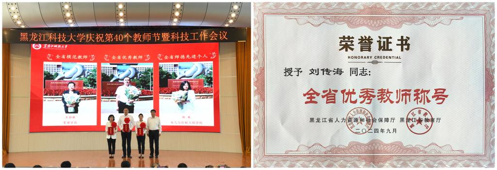 学院刘传海副教授在2024年全省教育系统先进集体和先进个人评选中获黑龙江省优秀教师荣誉称号。
