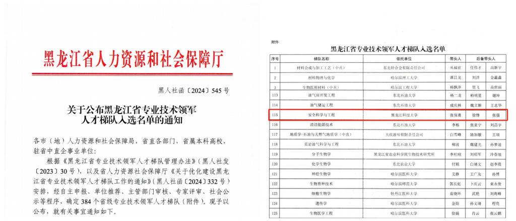 二、安全科学与工程学科梯队获批黑龙江省专业技术领军人才梯队