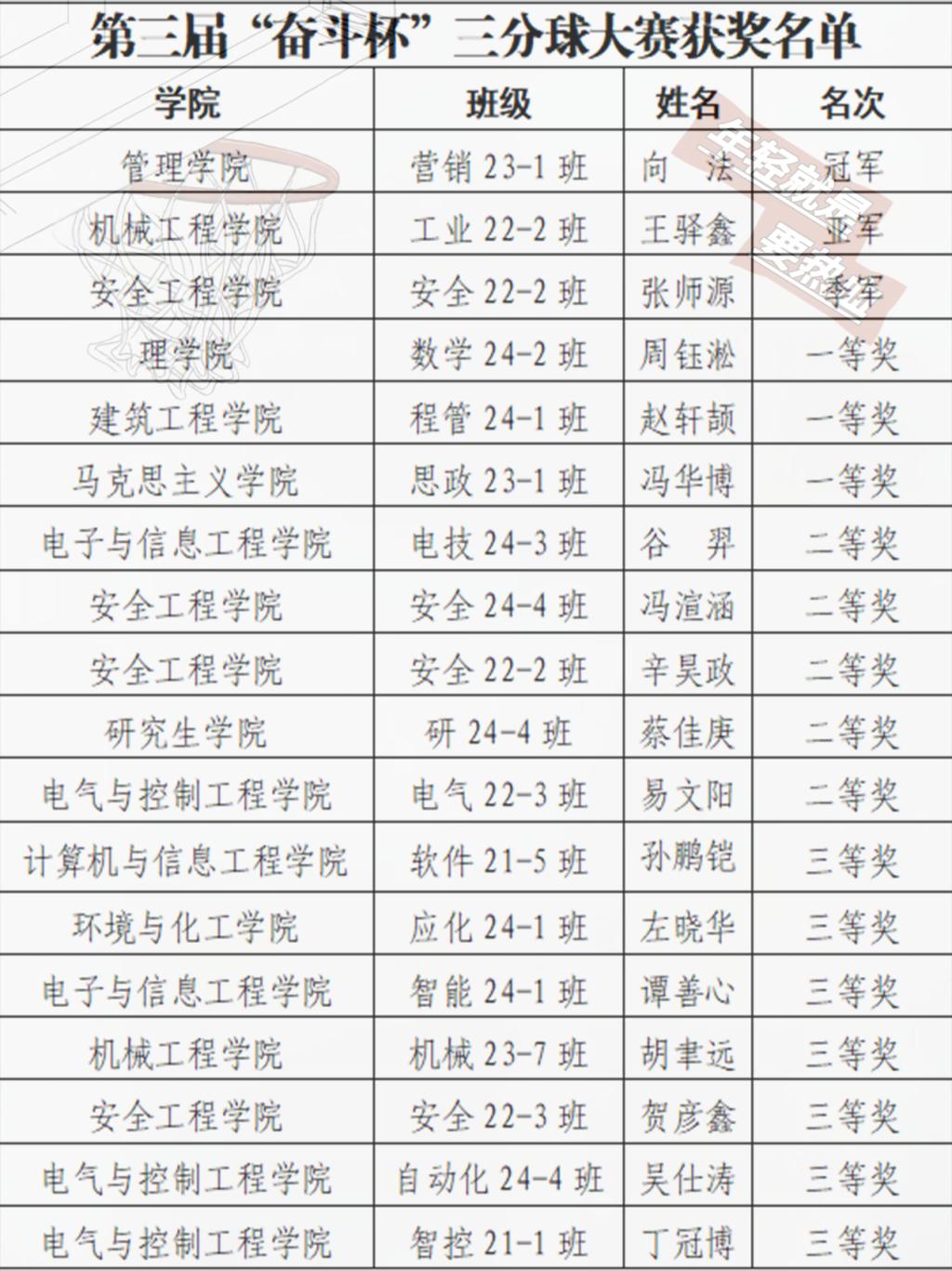 经过激烈角逐,最终根据比赛成绩综合排序,管理学院营销23-1班向法获得冠军、机械学院工业22-2班王驿鑫获得亚军、安全学院安全22-2班张师源获得季军。