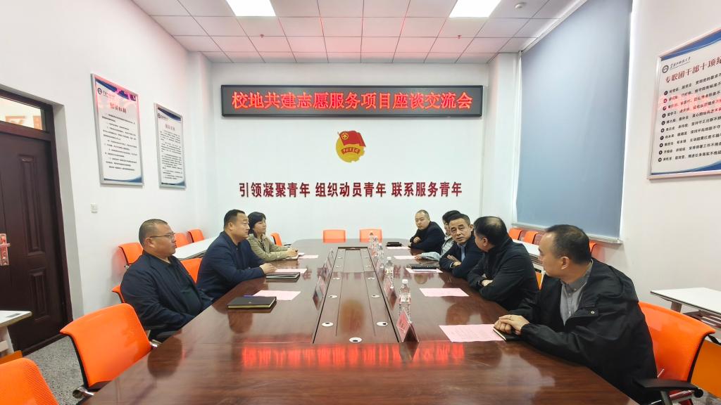 4月25日,应校团委邀请,哈尔滨新区社会工作部常务副部长李彧晖,哈尔滨新区农旅集团有限公司党总支书记、董事长陶冠宇,哈尔滨新区农旅集团有限公司副经理、阿勒锦公司经理张娜一行5人来乐鱼网站_乐鱼(中国)就志愿服务项目共建进行座谈交流。
