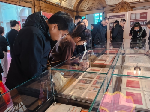 纪念馆内,在讲解员的讲解下,党员们怀着无比崇敬的心情依次参观了三大主题展厅,透过珍贵文物、影像资料及手稿,党员们重温了党的光辉历程,现场接受了党的纪律教育,深切感受到革命领袖们艰苦奋斗的革命精神和求真务实的工作作风。参观结束后,全体党员齐聚庄严肃穆的宣誓厅,在学院党委书记王娟的领誓下,面对鲜红党旗,全体党员高举右拳,重温入党誓词,铿锵的誓言在展厅内回荡。
