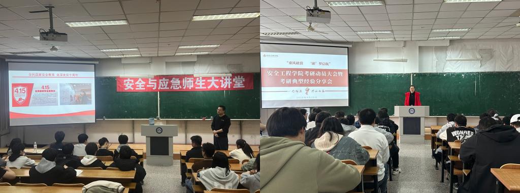 以“讲”传经,榜样引领成长。学院邀请保研典型、考研典型和就业典型开展经验交流会,充分发挥优秀学子的榜样示范作用。在交流会上,保研成功的同学分享了自己在专业学习、科研实践、竞赛活动中的宝贵经验;考研典型则从备考计划制定、心态调整、复试技巧等方面进行了细致的讲解,为考研学子提供了实用的参考;就业典型结合自身求职经历,分享了职业规划、简历制作、面试技巧等方面的心得,帮助2026届毕业生更好地了解职场需求,明确就业方向。同时,学院邀请专任教师举办了安全与应急师生大讲堂,依托学科专业,将专业课程与安全教育深度绑定,并结合国家安全案例深化理论认知。这些活动将优秀学子的成长轨迹转化为可借鉴的实践路径,将专业教育与国家安全教育深度融合,既强化了学生的专业素养,又厚植了家国情怀。