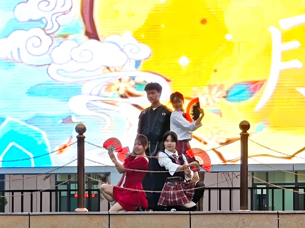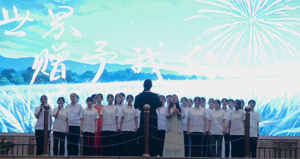 第二篇章“星光引航•感恩同行”在悠扬的乐器合奏《大鱼》中精彩开篇。笛子的清亮与小提琴的婉转完美交融,古典韵律与现代乐感激情碰撞,跳跃的音符编织成美妙旋律,带领观众沉浸于艺术的海洋,感受音乐的独特魅力;歌曲串烧《What Are Words》《寂静森林》《我们的明天》《海阔天空》依次唱响,熟悉的旋律引发全场大合唱。歌声中,图书馆苦读的凌晨、排练室挥洒的汗水、跑道上追赶的晨曦等校园记忆,都化作夏夜晚风里的闪耀碎片。