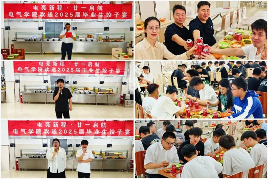 情暖饺子宴,奔赴新征程。6月18日,电气学院举办“电亮新程 廿一启航”2025届毕业生饺子宴。学院领导班子、全体辅导员与百余名毕业生代表共聚。学院院长苏勋文代表学院向圆满完成学业的毕业生致以热烈祝贺,他指出:‘电亮’承载着学院对你们的专业厚望,‘廿一’代表着毕业生四载求学历程,希望同学们将电气人严谨求实、创新担当的精神品格融入新征程,愿你们以青春之力投身民族复兴,常怀感恩,常回家看看。师生同享饺子宴象征团圆祝福,畅叙情谊。毕业生代表深情表达对母校培育的感激、同窗眷恋及建功立业的决心。此次活动既是温情告别仪式,更是满载学院深切关怀,增强了毕业生的归属感、荣誉感与爱校情怀。