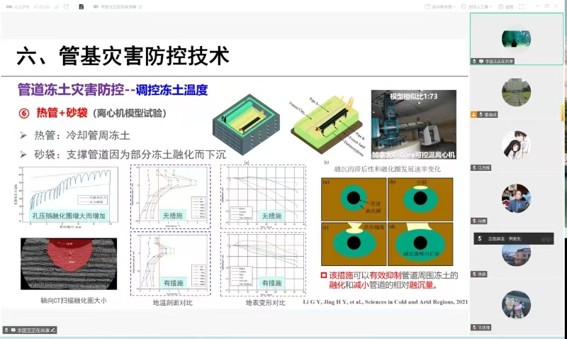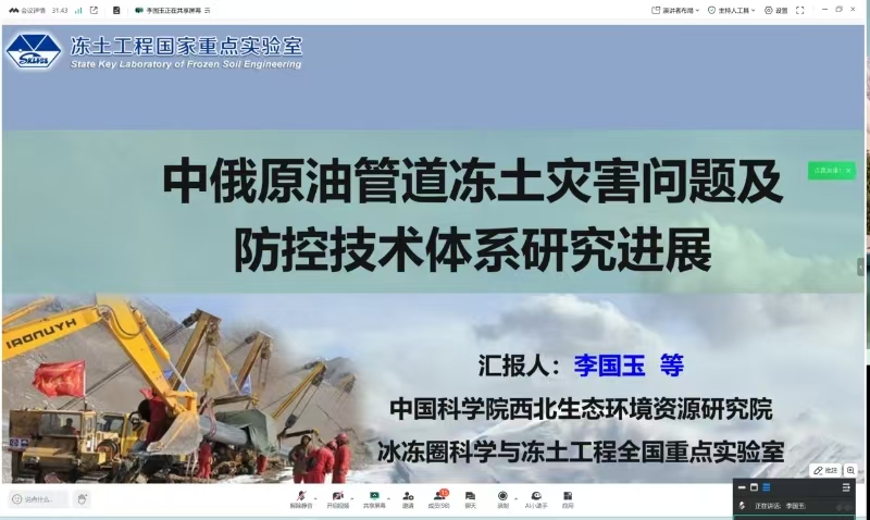 6月26日,中国科学院西北生态环境资源研究院二级研究员、中国科学院大学教授、俄罗斯科学院冻土研究所荣誉教授、甘肃省拔尖人才、中国科学院中蒙俄寒旱区环境与工程国际研究中心主任、2024中国知网高被引学者TOP1%、博士研究生导师李国玉应邀为全校师生作题为《中俄原油管道冻土灾害问题及防控技术研究进展》的线上学术报告。报告会由建筑工程学院副院长董连成主持,全校教师、研究生、本科生150余人参加。