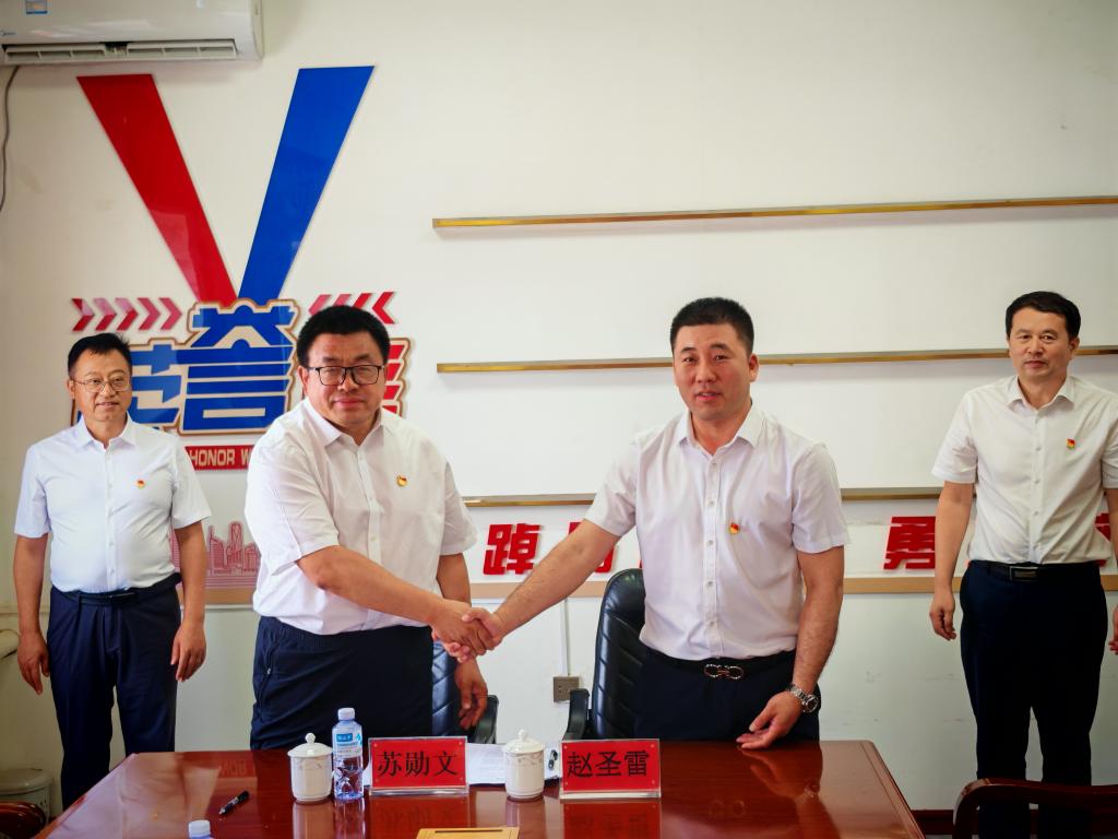 下井结束后,双方进行了相互了解的座谈会。会上,高平对学院一行的到来表示热烈欢迎,赵圣雷介绍了新发煤矿的基本情况、发展规划以及在智能化矿山建设中遇到的技术难题。苏勋文介绍了学院的学科建设、科研成果以及人才培养等方面的情况。双方围绕矿山电气设备智能化改造、新能源在矿山的应用、人才联合培养等方面进行了深入交流,赵圣雷与苏勋文签订了《产学研合作协议》。