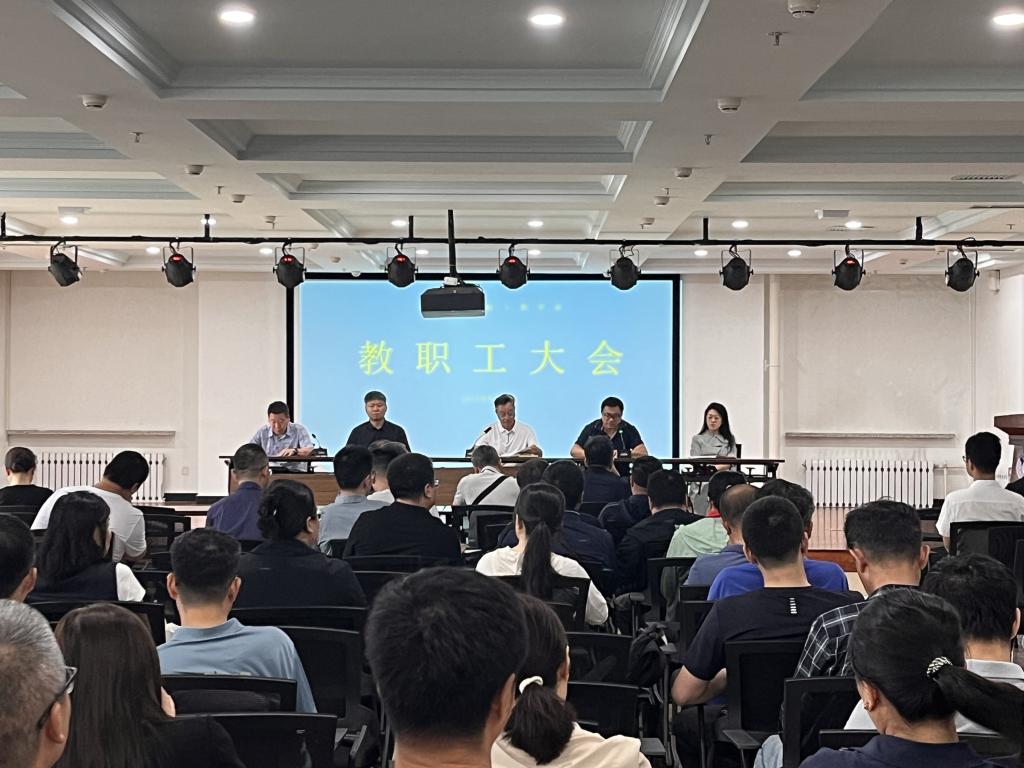 会上,李鹏银宣布了学院机构调整及人员安排的通知。同时按照我院年初提出“1234”:一引领、二攻坚、三强化、四确保的党政重点工作任务总结了上半年教学、科研的丰硕成果,学生综合素质全面提升,社会服务能力显著增强,人才引进遥遥领先等方面的成绩。并结合秋季学期开学工作会议精神,号召全体老师要以“身在最北方,心向党中央”的政治忠诚,强化政治引领、政治担当,立足立德树人,强化攻坚博士学位授权单位建设、攻坚科研经费;强化师资队伍建设、深化教学改革,提升教学质量;强化双创教育的创新实践,科学编制“十五五”规划,确保新学期开学启动工作、迎新和就业、校园安全稳定、意识形态、就业等方面的工作。